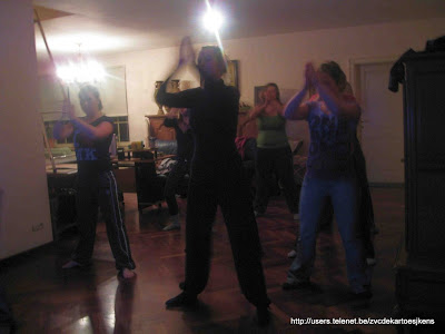 dames van de zaalvoetbalploeg De Kartoesjkens doen aan Zumba